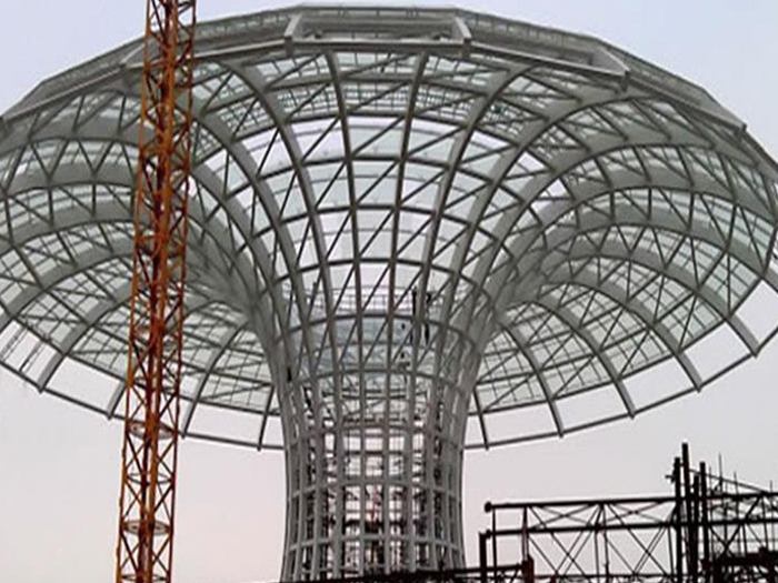 一、 球形河南网架结构是按照一定的网格形式由河南网架河南杆件与实心节点钢球通过高强螺栓连接组合而成的一种空间结构形式。我国于1978年开始从国外引进河南螺栓球网架结构技术和产品,通过长期实践,作为成熟的河南建筑结构形式,球形网架结构已在国内外河南建筑行业得到了十分广泛的应用。其特点为:自重轻、跨度大、平面形状设计灵活、河南施工定位简单、安装方式多样等。特别适用于大曲率空间结构系统如:桶壳结构、河南球壳结构、各类河南建筑造型等。